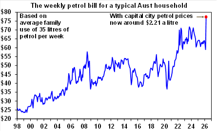 For the average household with a mortgage and a car, it’s going to suck. Petrol is already at record weekly costs, adding around $78 a month to the average household budget compared to February. A rate rise on top of that adds roughly another $110 a month in mortgage repayments. Together that is close to $190 a month in extra costs landing simultaneously, on a consumer base that was already spending cautiously before any of this started.